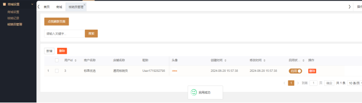 新增输入要绑定人员的ID即可,绑定完记得启用(注:商家管理员本身就有核销权限不用再添加